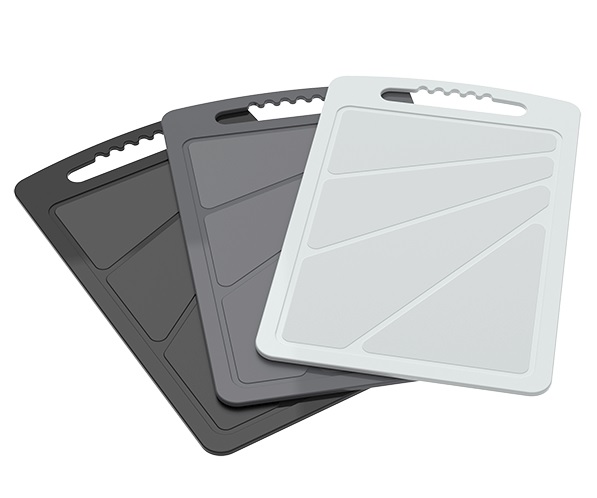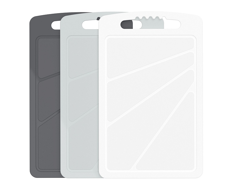 Набор разделочных досок предназначен для резания или разрубания продуктов питания. В набор входят доски серого, черного цвета и цвета графита габаритами 320х200х4 мм. Благодаря ручке изделия удобно хранить в подвешенном состоянии.