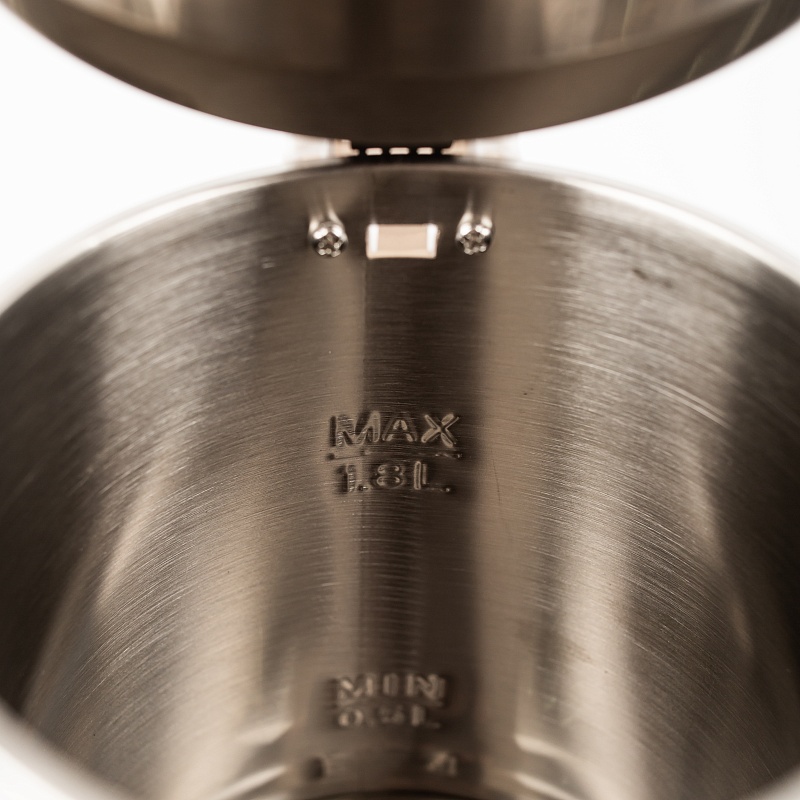 Корпус электрочайника выполнен из нержавеющей стали. Благодаря мощности 1500 Вт позволит быстро вскипятить до 1,8 л воды. Скрытый нагревательный элемент чайника и фильтр от накипи позволят легко поддерживать корпус изнутри чистым от загрязнений и накипи. Имеет встроенную систему отключения при достижении водой температуры 100 градусов, о чем оповестит световой индикатор, а так же защиту от включения без воды. Благодаря свободному вращению на подставке прибор удобно брать и ставить на место любой рукой. На корпусе чайника предусмотрен световой индикатор включения, который видно даже в темноте.