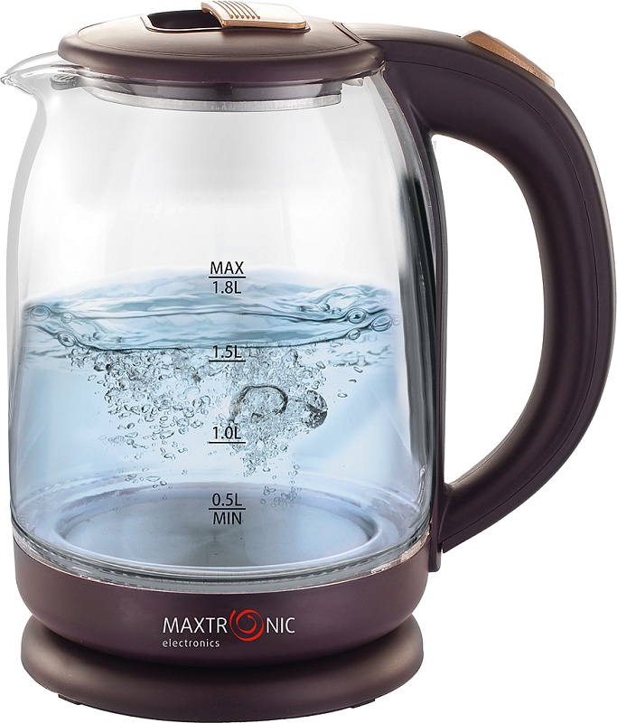 Электрочайник MAXTRONIC MAX- 401 хорошо впишется в обстановку и добавит Вашей кухне уюта. Благодаря мощности 1800 Вт позволит быстро вскипятить до 1.8 л воды, чего хватит на всю семью. Чайник выполнен из пластика в комбинации коричневого цвета с элементами золотистого. Нержавеющая сталь под крышкой. Корпус из термостойкого стекла позволит наблюдать полный процесс нагревания воды и ее оставшееся количество, чтобы вовремя наполнить его, а подсветка во время работы добавит чайнику оригинальности. Нагревательный элемент с покрытием из нержавеющей стали имеет закрытую конструкцию, благодаря чему при необходимости чайник можно будет легко отмыть изнутри от загрязнений и накипи. Прибор выключится автоматически при закипании, что обеспечит дополнительную безопасность в использовании.