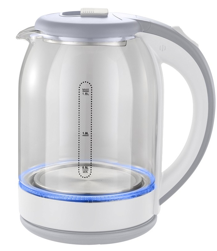 Электрочайник MAXTRONIC MAX- 407 с LED подсветкой хорошо впишется в обстановку и добавит Вашей кухне уюта. Благодаря мощности 1800 Вт позволит быстро вскипятить до 1.8 л воды, чего хватит на всю семью. Ручка и крышка выполнены из пластика в комбинации серого и белого цветов. Корпус из термостойкого стекла позволит наблюдать полный процесс нагревания воды и ее оставшееся количество, чтобы вовремя наполнить его, а подсветка во время работы добавит чайнику оригинальности. Нагревательный элемент с покрытием из нержавеющей стали имеет закрытую конструкцию, благодаря чему при необходимости чайник можно будет легко отмыть изнутри от загрязнений и накипи. Прибор выключится автоматически при закипании, что обеспечит дополнительную безопасность в использовании.
