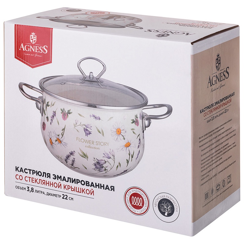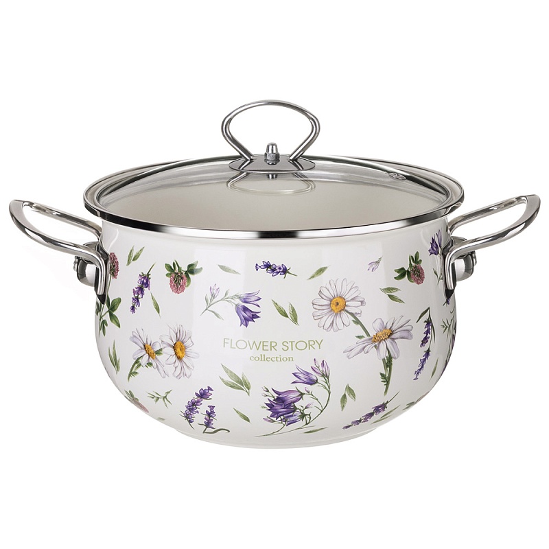 КАСТРЮЛЯ ЭМАЛИРОВАННАЯ СО СТЕКЛЯННОЙ КРЫШКОЙ СЕРИЯ FLOWER STORY 3,8 Л ДИА 22СМ 943-098 (6/1) в Кирове