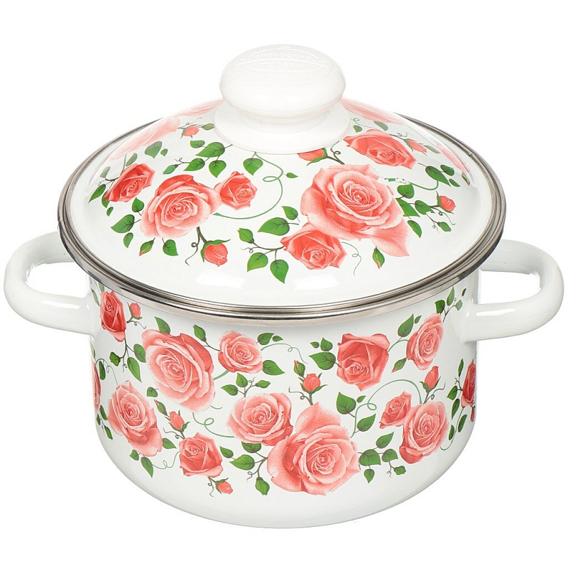 Кастрюля цил 3 л с ободком, белая, Роза плетистая 3MD181М (6) в Кирове