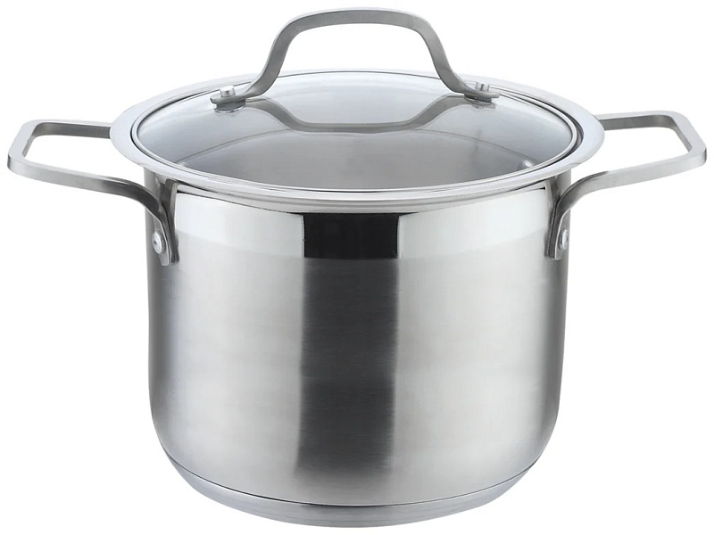 Диаметр 26 см, 5-ти слойное капсульное дно, стеклянная жаропрочная крышка с паровыпуском , матовая полировка внутри и снаружи, мерная шкала внутри кастрюли, подходит для всех видов плит