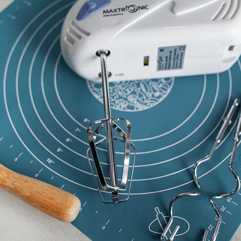 2 вида насадок (крюки для замешивания теста и венчик для взбивания яиц и крема)