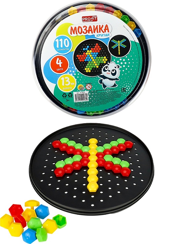 Круглая пластиковая мозаика - станет замечательной игрушкой для Вашего ребёнка! Она прекрасно развивает творческое воображение, абстрактное и логическое мышление, внимание, мелкую моторику рук, а также учит различать цвета и оттенки. Мозаика обязательно понравится ребёнку яркими деталями, хорошим качеством и разными вариантами складывания изображений! Количество элементов: 110 шт.