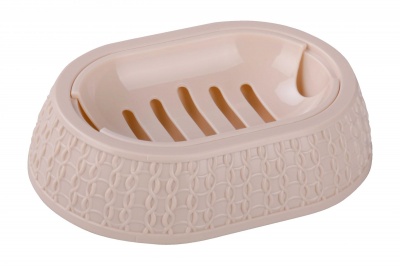 Мыльница серии «Вязаное плетение» произведена из высококачественного полипропилена. Мыльница идеально подходит для хранения мыла. Мыльница имеет съёмную вставку с отверстиями, которые позволяют воде стекать, не давая мылу размокнуть. Оригинальный внешний вид задает поверхность, имитирующая вязаное плетение.