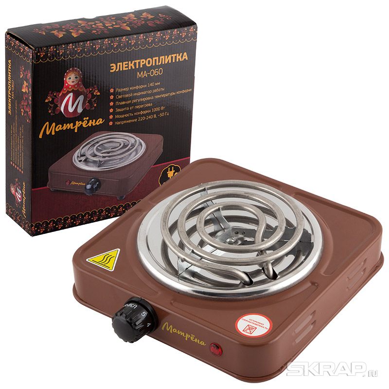 Электроплитка МАТРЕНА МА-060 коричневая, спираль (10) в Кирове
