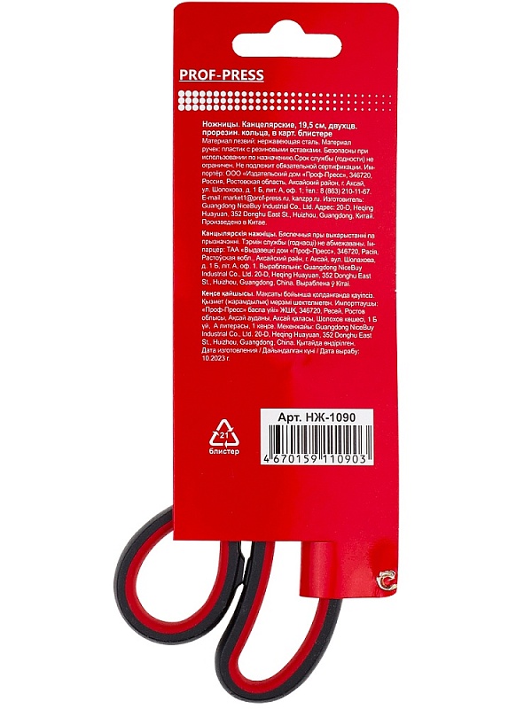 Ножницы канцелярские 19,5 см, двухцв. прорезин. кольца, в карт. блистере в Кирове