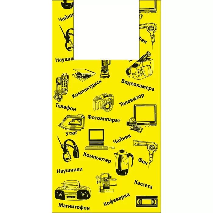 Пакет майка ЭЛЕКТРОНИКА Желтый 43+20х64 50шт/уп МАЙ02737 (24/1)
