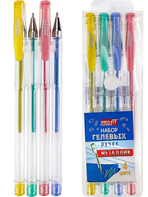 Набор гелевых ручек четырех цветов. Ручки пишут легко и быстро, не требуют нажима. Быстро высыхающие чернила не размазываются и имеют насыщенный цвет. Упаковка: пластиковый блистер.
