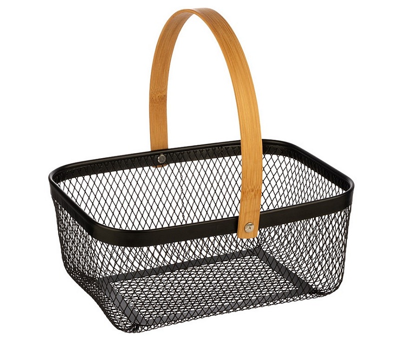 Корзинку удобно переносить благодаря деревянной ручке. Стальная сетка хорошо пропускает воздух, сохраняя свежесть продуктов.